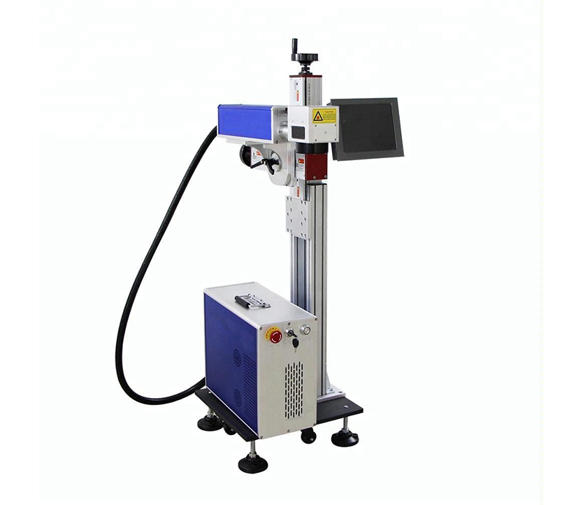 Flying Online Fiber Laser Marking Machine 1.Equipped with original EZCAD Design and graph will be converted into digital signals by laser marking control card transmitted into galvanometer scanning head 2.Galvanometer scanning head Higher scanning speed and marking accuracy 3.LCD computers that can be moved on demand 4.Portable and mini type,easy carry The handle can adjust the angle of the lens up and down,the horizontal column can adjust the length of the lens before and after ,easy to use 5.Aluminum Worktable Can be equipped with fixed workbench/pipeline 6.Emergency stop,main power key switch ,laser switch 7.Column height can be adjusted freely according to requirements